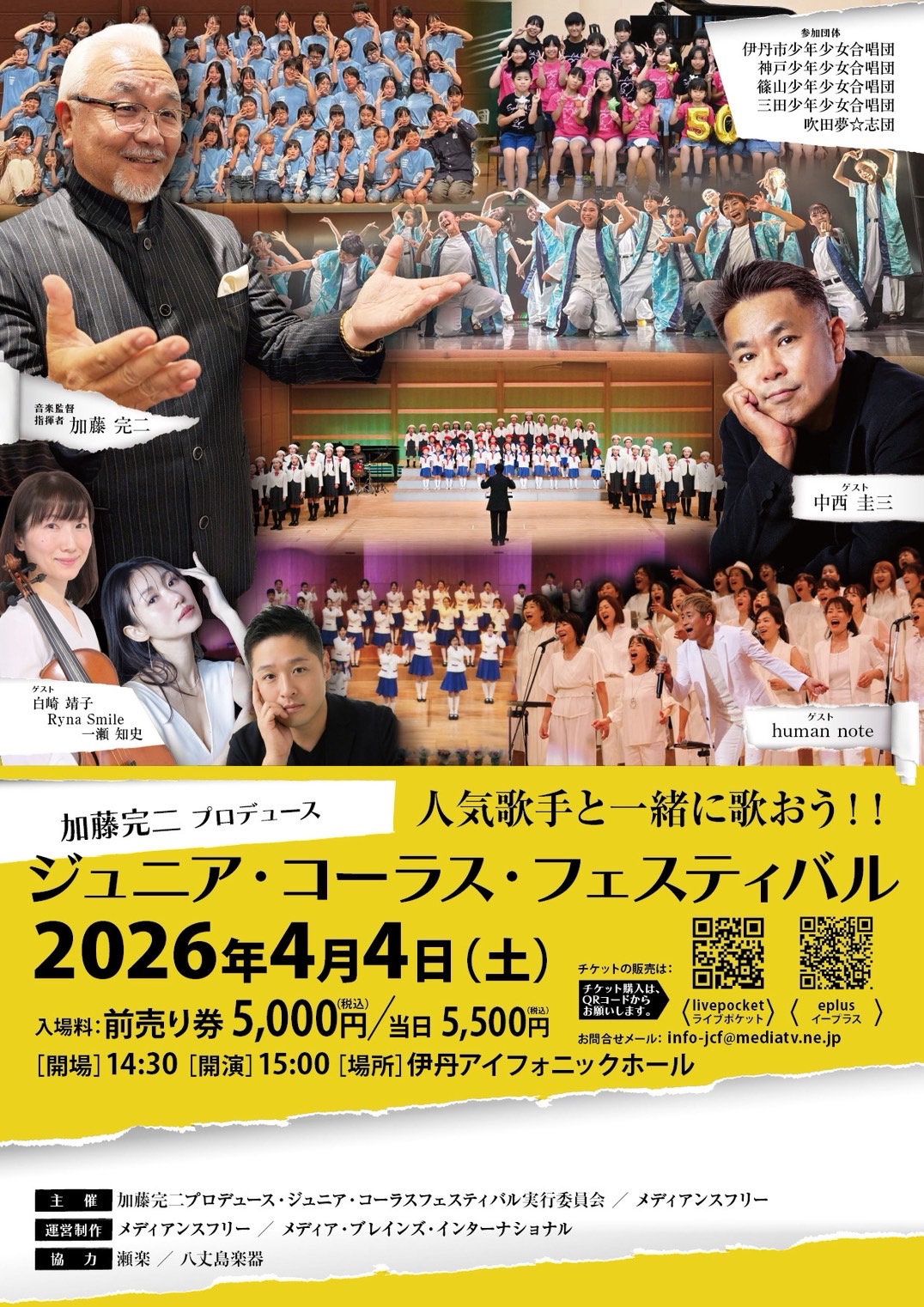 京都市少年合唱団の音楽監督でOBの加藤完二さんプロデュースジュニア・コーラス・フェスティバルのご案内です